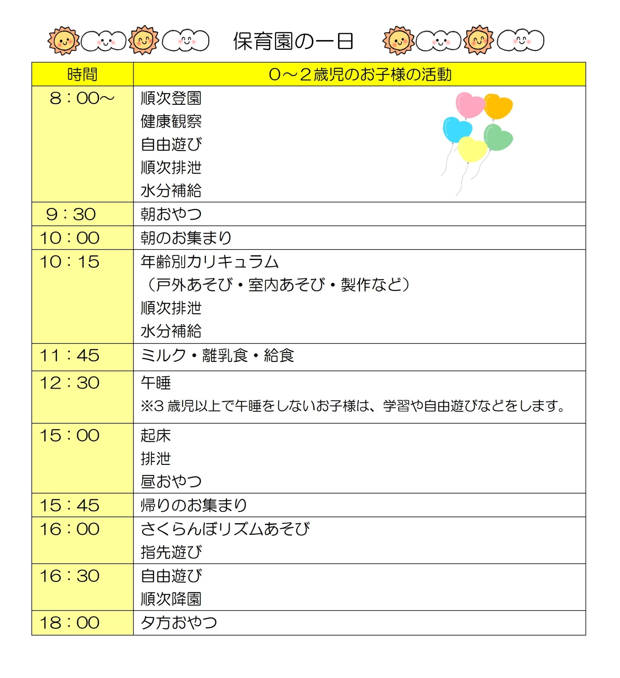 | 保育形態 | 月極、一時保育、延長保育 |